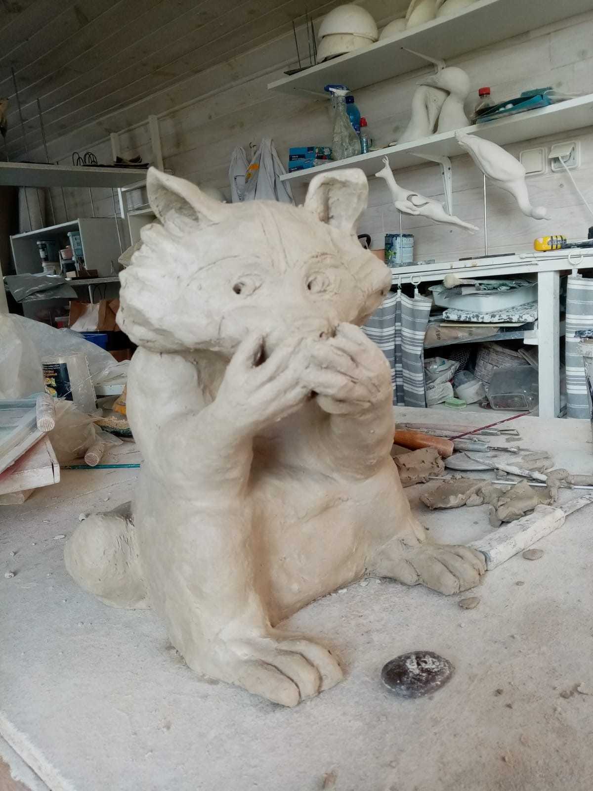 Le regard imprégné d’ attitudes, les doigts impriment ensuite à la terre des formes auxquelles l’imaginaire prend sa part, accentuant le voile d’une nageoire ou la courbure d’une aile.